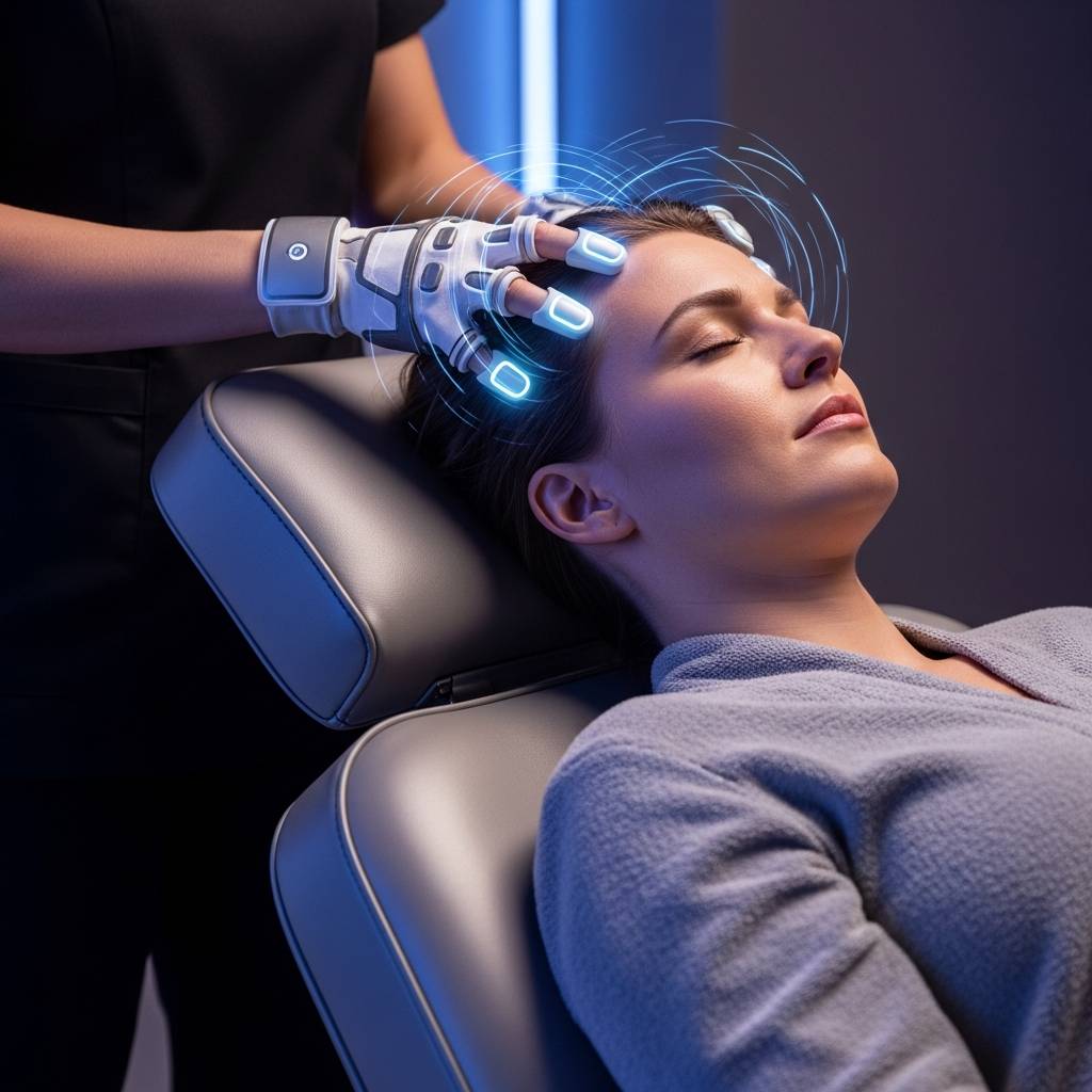 ヘッドスパのスペシャリスト集団である私たちが、頭のツボや睡眠のメカニズムを徹底的に熟知し、ゼロから作り上げたこの手技は、これまでのヘッドスパの概念を覆す新感覚のアプローチです。施術を受けられた多くのお客様が、「まるで指ではない違う何かで触れられているような不思議な感覚でした」と驚きの声を上げてくださいます。人間の指の形をしているはずなのに、深層筋に触れる絶妙な圧力や、頭の丸みにピタリと沿う密着感は、まさに指武装固有の感覚といえます。